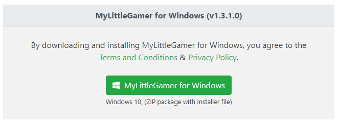 After logging in to your account, proceed to download the MyLittleGamer for Windows app. On the download page, click the green button to download the app. This is a ZIP archive that will need to be unzipped before installation can begin.