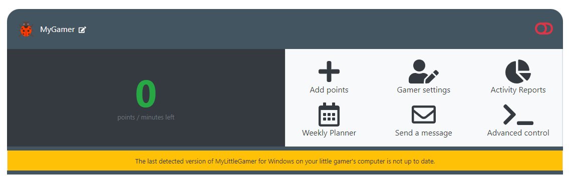 The installed application is active and fully functional. It will display your gamer's profile and their remaining points. You can now track your gamer's activity, send them messages, etc.