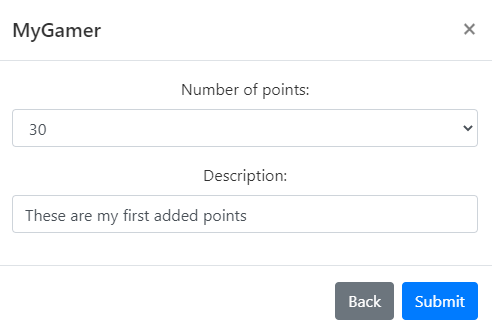 After clicking on "Add Points", select for example 30 points (this equals 30 minutes), enter a message that will appear on the gamer's computer and click on "Submit". Now if you haven't already done so you can finish activating the installed app by clicking the "Next" button in the app.
